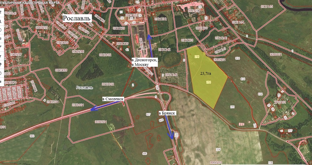 Земельный участок, непосредственно прилегающий к черте населенного пункта г.Рославль, расположен на южной окраине города в 300 метрах от кольцевой развязки шоссе Р-120 в направлении "Рославль - Брянск".