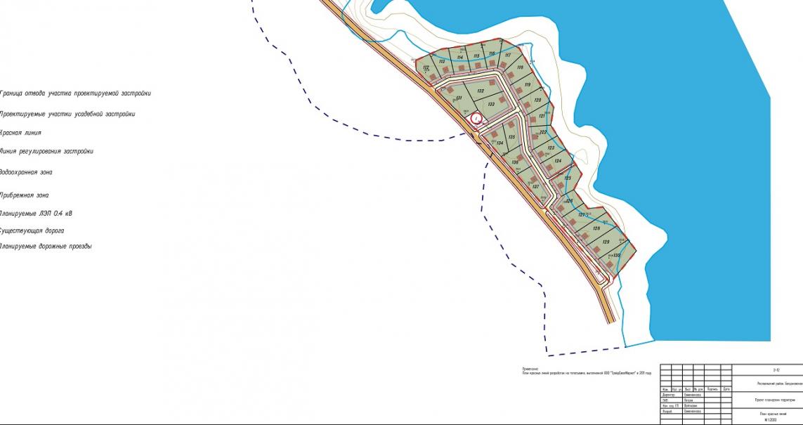 Земельные участки с межеванием от 15 соток до 22 соток, с выходом к большой воде. Рельеф участка ровный, наблюдается незначительный уклон участка в сторону водохранилища. Живописное место, открывается панорамный вид на Десногорское водохранилище. С одной стороной участок граничит с дорогой, вдоль которой проходит линия электропередач, с другой вплотную подходит к водохранилищу. Береговая линия имеет протяженность около 1300 метров. Размещение участка не противоречит требованиям ст. 65 Водного Кодекса РФ от 03.06.2006г. №74-ФЗ, при условии оборудования участка сооружениями, обеспечивающими охрану водных объектов от загрязнения, засорения и истощения вод в соответствии с водным законодательство и законодательством в области охраны окружающей среды.