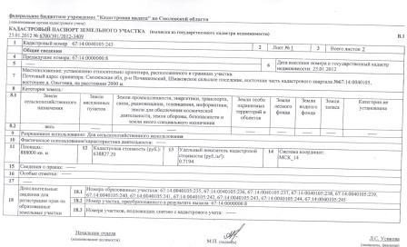 общая площадь - 3478 000 кв. м.; количество участков - 11 участков; участки площадью - от 74 000 кв.м. до 1332 000 кв.м. Расположение: Смоленская область, Починковский район, примерно в 2400 м по направлению на северо-восток от д.Шмаково. Категория земель: земли сельскохозяйственного назначения. Разрешенное использование: для сельскохозяйственного производства. подробнее на публичной кадастровой карте Росреестра http://maps.rosreestr.ru/portalonline/?l=11&x=3675748.2416&y=7232452.0626&mls=map|anno&cls=cadastre&ot=103&oid=36521 http://smotri.com/video/view/?id=v1158081ea0d http://ribachok.com/vse-o-zimnei-ribalke/12-zimnyaya-lovlya-lescha-desnogorskoe-vodohranilische.html http://onhook.net/video/idvideo/846 http://smotri.com/video/view/?id=v1158081ea0d http://www.youtube.com/watch?v=ahVjP_m2480 http://www.youtube.com/watch?v=srbdnLM9Xi8 http://www.youtube.com/watch?v=uxPdecXbtjU http://www.youtube.com/watch?v=603L4wkC2u4 http://www.youtube.com/watch?v=m8p693FVVa4 http://www.youtube.com/watch?v=l3lIXsx1H2gОбщее описание