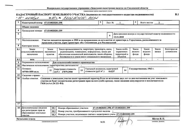 Смоленская область, Рославльский район в 3500 м. по направлению на юго-восток от ориентира д. Городчанка.